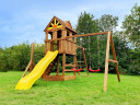 Детям постарше безусловно понравится яркая двухволновая горка со скатом 2.7 метра. А для активных и подвижных в этой площадке предусмотрен рукоход с удобным входом.