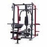 Силовая станция со скамьей на базе Машины Смита. В США продается под брендом Gold Gym - лидера силовых тренажеров. В комплекте Машина Смита и скамья со опциями. Тренажер предназначен для выполнения различных силовых упражнений: Машина Смита, тяга сверху / снизу, баттерфляй, парта для бицепса, сгибание / разгибание, жим лежа на скамье дополнительной штанги (опция). Изготовлена из прочного стального профиля. Отдельно стоящая скамья с партой для бицепса и рычагом для тренировки ног (сгибание  / разгибание). Спинка скамьи позволяет отрегулировать угол наклона. Сиденье так же регулируется по высоте. В комплекте: W-гриф, 2 рукоятки для тяги, замки-пружины для фиксации дисков. В качестве нагрузки используются диски Ø51 мм (опция, приобретается отдельно). Кронштейны для установки штанги и предохранители регулируются по высоте. Для хранения весов (дисков) предусмотрены 4 держателя, посадочный размер 51 мм.